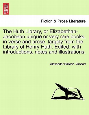 Title: The Huth Library, or Elizabethan-Jacobean unique or very rare books, in verse and prose, largely from the Library of Henry Huth ... Edited, with introductions, notes and illustrations, etc. by the Rev. A. B. Grosart, .Publisher: British Library, Historical Print EditionsThe British Library is the national library of the United Kingdom. It is one of the world's largest research libraries holding over 150 million items in all known languages and formats: books, journals, newspapers, sound recordings, patents, maps, stamps, prints and much more. Its collections include around 14 million books, along with substantial additional collections of manuscripts and historical items dating back as far as 300 BC.The FICTION & PROSE LITERATURE collection includes books from the British Library digitised by Microsoft. The collection provides readers with a perspective of the world from some of the 18th and 19th century's most talented writers. Written for a range of audiences, these works are a treasure for any curious reader looking to see the world through the eyes of ages past. Beyond the main body of works the collection also includes song-books, comedy, and works of satire. ++++The below data was compiled from various identification fields in the bibliographic record of this title. This data is provided as an additional tool in helping to insure edition identification: ++++ British Library Grosart, Alexander Balloch.; null null 12268.g.3/2.