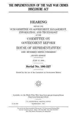 The implementation of the Nazi War Crimes Disclosure Act: hearing before the Subcommittee on Government Management, Information, and Technology of the Committee on Government Reform, House of Representatives, One Hundred Sixth Congress, second session, June 27, 2000.