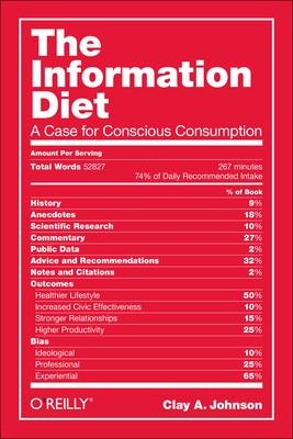 We're all battling a storm of distractions, buffeted with notifications and tempted by tasty tidbits of information. And just as too much junk food can lead to obesity, too much junk information can lead to cluelessness. The Information Diet shows you how to thrive in this information glut--what to look for, what to avoid, and how to be selective. In the process, author Clay Johnson explains the role information has played throughout history, and why following his prescribed diet is essential for everyone who strives to be smart, productive, and sane.
