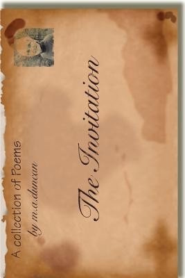 The Invitation is a first-time collection of poems by author M.A. Duncan. Drawing on six decades of life's experiences, Duncan illuminates the pain of loss as she copes with death, divorce, cancer, infidelity and adoption. The Invitation exposes a woman's innermost feelings, richly extracted from personal journals which span many years.Inside these poems is a clear, unobstructed view of the human heart, reproduced with insight, imagination and grace. Sincere, poignant, joyful and sad, the author communicates with common sense, carrying the reader safely along into the future.