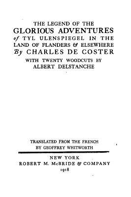 The Legend of the Glorious Adventures of Tyl Ulenspiegle in the Land of Flanders and Elsewhere by Charles De Coster. This book is a reproduction of the original book published in 1918 and may have some imperfections such as marks or hand-written notes.