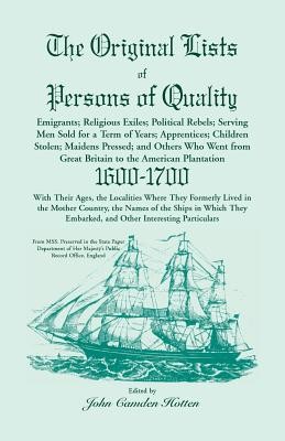 The title says it all! This extensive volume of transcriptions offers a collection of the names of the emigrant ancestors of many thousands of American families. In the ample introduction, Mr. Hotten states his "object is simply and briefly to point out s