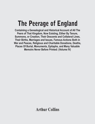 The Peerage Of England: Containing A Genealogical And Historical Account Of All The Peers Of That Kingdom, Now Existing, Either By Tenure, Summons, Or Creation, Their Descents And Collateral Lines, Their Births, Marriages And Issues, Famous Actions Both In War And Peaces, Religious And Charitable Donations, Deaths, Places Of Burial, Monuments, Epitaphs, And Many Valuable Memoirs Never Before Printed: Also Their Paternal Coats Of Arms, Crests, Supporters And Mottoes, Curiously Engraved On Copper-Plates / Collected From Records, Old Wills, Authentic Manuscripts, Our Most Approved Historians, And Other Authorities, Which Are Cited (Volume Iv) has been considered by academicians and scholars of great significance and value to literature. This forms a part of the knowledge base for future generations. So that the book is never forgotten we have represented this book in a print format as the same form as it was originally first published. Hence any marks or annotations seen are left intentionally to preserve its true nature.