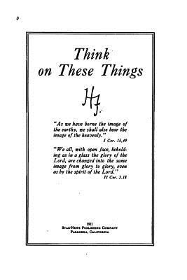 Think on These Things by Harriet L. Green. This book is a reproduction of the original book published in 1921 and may have some imperfections such as marks or hand-written notes.