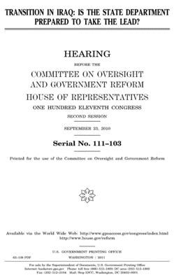 Transition in Iraq: is the State Department prepared to take the lead?: hearing before the Committee on Oversight and Government Reform, House of Representatives, One Hundred Eleventh Congress, second session, September 23, 2010.