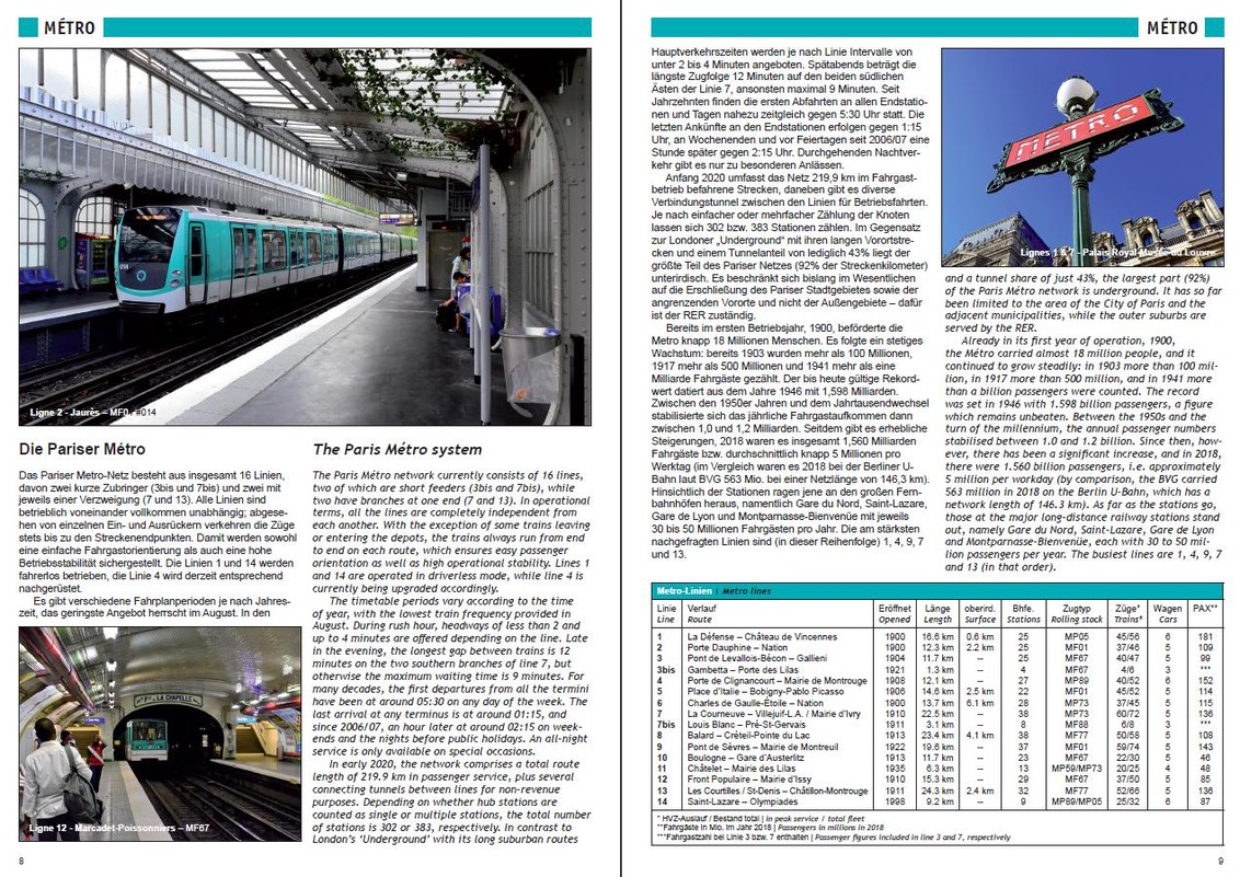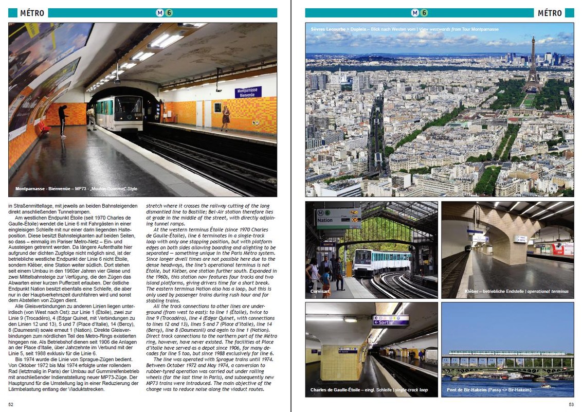 The French capital has much more to offer to urban rail enthusiasts than the world-famous "Métro", which is currently being expanded on a large scale in the outer areas of the Paris conurbation. There is also the "RER" with frequent cross-city trains that run far beyond the city limits on a network complemented by a series of radial suburban lines classified as "Transilien". In addition, there are now 11 tram lines, some of them isolated from each other, including two "Tram-Train" routes, operated by SNCF, and two "Translohr" lines, which feature trams on rubber tyres. The transport scene is rounded off by two VAL systems, i.e. driverless small-profile metros that connect the two major airports. In this book, author Christoph Groneck presents every means of urban rail transport, giving an overview of the respective history of each system and the vehicles used. At the end of the book, the reader will find detailed maps in the form of an atlas of the entire metropolitan area of Paris, which is home to some 10 million people.