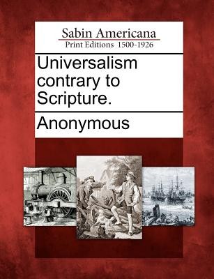 Title: Universalism contrary to Scripture.Author: Multiple Contributors, See NotesPublisher: Gale, Sabin Americana Description: Based on Joseph Sabin's famed bibliography, Bibliotheca Americana, Sabin Americana, 1500--1926 contains a collection of books, pamphlets, serials and other works about the Americas, from the time of their discovery to the early 1900s. Sabin Americana is rich in original accounts of discovery and exploration, pioneering and westward expansion, the U.S. Civil War and other military actions, Native Americans, slavery and abolition, religious history and more.Sabin Americana offers an up-close perspective on life in the western hemisphere, encompassing the arrival of the Europeans on the shores of North America in the late 15th century to the first decades of the 20th century. Covering a span of over 400 years in North, Central and South America as well as the Caribbean, this collection highlights the society, politics, religious beliefs, culture, contemporary opinions and momentous events of the time. It provides access to documents from an assortment of genres, sermons, political tracts, newspapers, books, pamphlets, maps, legislation, literature and more.Now for the first time, these high-quality digital scans of original works are available via print-on-demand, making them readily accessible to libraries, students, independent scholars, and readers of all ages.++++The below data was compiled from various identification fields in the bibliographic record of this title. This data is provided as an additional tool in helping to insure edition identification: ++++SourceLibrary: Huntington LibraryDocumentID: SABCP00643900CollectionID: CTRG10182208-BPublicationDate: 17940101SourceBibCitation: Selected Americana from Sabin's Dictionary of books relating to AmericaNotes: Signatures: [A]4 B-P4. "Errata"--p. [120]Collation: 117, [3] p.; 22 cm. (8vo)