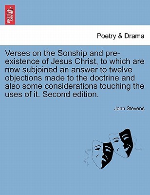 Title: Verses on the Sonship and pre-existence of Jesus Christ, to which are now subjoined an answer to twelve objections made to the doctrine and also some considerations touching the uses of it. Second edition.Publisher: British Library, Historical Print EditionsThe British Library is the national library of the United Kingdom. It is one of the world's largest research libraries holding over 150 million items in all known languages and formats: books, journals, newspapers, sound recordings, patents, maps, stamps, prints and much more. Its collections include around 14 million books, along with substantial additional collections of manuscripts and historical items dating back as far as 300 BC.The POETRY & DRAMA collection includes books from the British Library digitised by Microsoft. The books reflect the complex and changing role of literature in society, ranging from Bardic poetry to Victorian verse. Containing many classic works from important dramatists and poets, this collection has something for every lover of the stage and verse. ++++The below data was compiled from various identification fields in the bibliographic record of this title. This data is provided as an additional tool in helping to insure edition identification: ++++ British Library Stevens, John; null 8 . 11645.c.46.