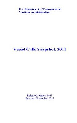 The snapshot contains data on calls by oceangoing vessels of 10,000 deadweight (DWT) or greater at U.S. ports. Vessel capacities are expressed in terms of deadweight tons for all vessel types, twenty-foot equivalent units (TEU's) for containerships and cubic meters (CM) for gas carriers.