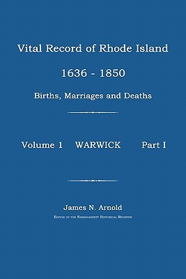 Vital Record of Warwick, Rhode Island, Volume I, Part I. James N. Arnold. Softcover, (1891), repr. 2001, Index, 228 pp. As the title indicates, this book covers vital records for the town of Warwick, Rhode Island, for the period 1636-1850. This work is one of many books written by the author, James N. Arnold, a former editor of the Narragansett Historical Register. There are approximately 9,000 individual names, and the records contained include dates of births, deaths, and marriages, as well as other valuable information. Softcover, (1891), repr. 2011, Index, 231 pp.