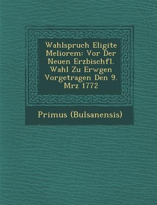 Wahlspruch Eligite Meliorem: Vor Der Neuen Erzbisch�fl. Wahl Zu Erw�gen Vorgetragen Den 9. M�rz 1772
