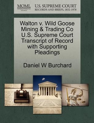 The Making of Modern Law: U.S. Supreme Court Records and Briefs, 1832-1978 contains the world's most comprehensive collection of records and briefs brought before the nation's highest court by leading legal practitioners - many who later became judges and associates of the court. It includes transcripts, applications for review, motions, petitions, supplements and other official papers of the most-studied and talked-about cases, including many that resulted in landmark decisions. This collection serves the needs of students and researchers in American legal history, politics, society and government, as well as practicing attorneys. This book contains copies of all known US Supreme Court filings related to this case including any transcripts of record, briefs, petitions, motions, jurisdictional statements, and memorandum filed. This book does not contain the Court's opinion. The below data was compiled from various identification fields in the bibliographic record of this title. This data is provided as an additional tool in helping ensure edition identification: Walton v. Wild Goose Mining & Trading CoPetition / Daniel W Burchard / 1903 / 574 / 194 U.S. 631 / 24 S.Ct. 856 / 48 L.Ed. 1158 / 2-1-1904