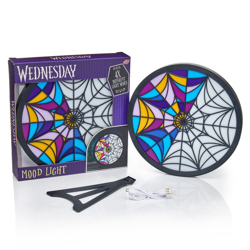 Ikoniskais logs no populārā seriāla Wednesday, kas bija redzams Wednesday un Enid kopmītnēs Nevermora akadēmijā, ir skaisti pārveidots par daudzrežīmu noskaņu lampiņu. Wednesday noskaņu lampai ir 4 dažādas funkcijas, kas palīdz parādīt loga replikas noskaņu gaismu vislabākajā iespējamā kvalitātē. Viegli lietojams un darbināms ar USB (1,5 m vads komplektā) vai ar 3AAA baterijām ( nopērkamas atsevišķi). Jūs varat piekārt loga lampu pie sienas (Wednesday un Enid istabas stilā) vai izmantot komplektā pievienoto statīvu, lai to novietotu uz plaukta vai kumodes.