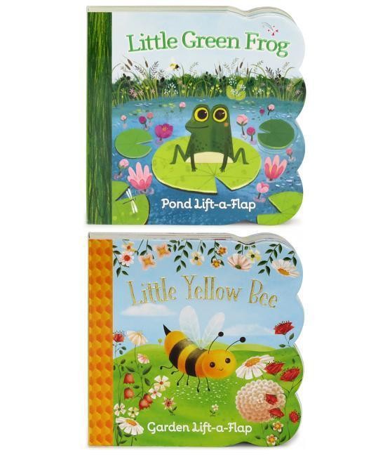 This best selling pack of sturdy lift-a-flap board books introduces your baby and toddler to the Little Green Frog and LIttle Yellow Bee. Follow the frog as he introduces his friends by the pond including ducks, fish, turtles, and more in this adorable lift-a-flap board book. Follow the bee as he introduces his friends in the garden including snails, bunnies, ladybugs, and more. Simple sentences reinforce future language structure while grasping and lifting the sturdy flaps helps develop fine motor skills. A perfect first book! 2 Pack Set includes: The Little Green Frog and the Little Yellow Bee • Welcome to the world little one! Come explore our Lift-a-Flap board book filled with surprises