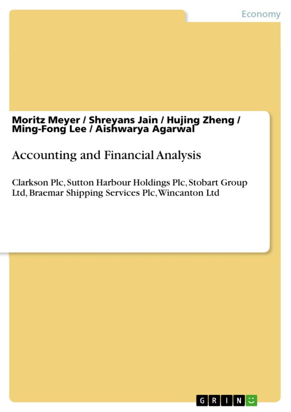 Document from the year 2017 in the subject Economics - Finance, grade: 65%, University of Strathclyde, course: Accounting and Financial Analysis, language: English, abstract: The purpose of this report is to present the best company from the peer group based on accounting and financial analysis. The peer group contains five companies from the industrial goods and services sector - Clarkson Plc, Stobart Group Ltd, Braemar Shipping Services Plc and Wincanton Ltd that listed on the main market of London Stock Exchange and Sutton Harbour Holdings Plc, which is listed on the Alternative Investment Market of London Stock Exchange. On the basis of analysis conducted, we highly recommend Clarkson Plc as a company worth of investment. The data used for production of this report is historical data which are publically available. In the summary section of this report, we will provide detailed background of the selected company, including its financial highlights as well as comparison with other four peers' financial performance. The accounting analysis presents an overview of the accounting policies in the peer group.The financial analysis is the last part of this report containing profitability, liquidity, efficiency analysis and financial structure. Lastly, a comparison of investment figures is provided.