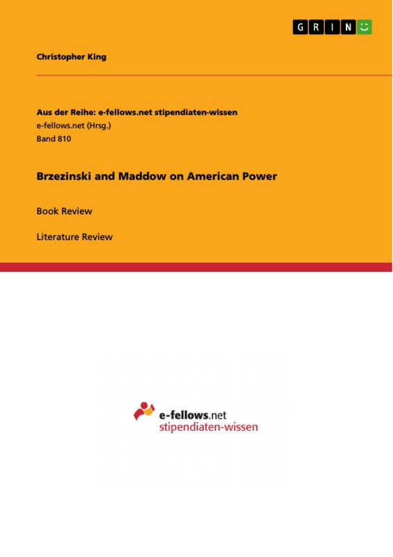 Literature Review from the year 2012 in the subject Politics - International Politics - Region: USA, grade: 1,0, Indiana University (Department of Political Science), course: United States Foreign Policy, language: English, abstract: The future of America's position in the world is a hotly debated topic and this paper will review two books on American power and military capability. Zbigniew Brzezinski observes in "Strategic Vision" that a shift in world power occurs and so has to change the strategy of the USA. He assesses different liabilities and assets that need to be considered in dealing with these changes. Rachel Maddow however has a different emphasis in "Drift" and is concerned about the development of perpetual American war and the responsible but unchecked executive branch. In the following will be argued that while other nations may rise, the USA can still sustain its position of power, if it considers the research of Brzezinski and Maddow to be of relevance. Reforms at home and readiness to transition into a world shared with nations that rise or come back to their old greatness will be needed to use America's power and resources in the future more wisely. America will continue to be a world power if it avoids mistakes it makes right now at home and embraces the new realities of the world.