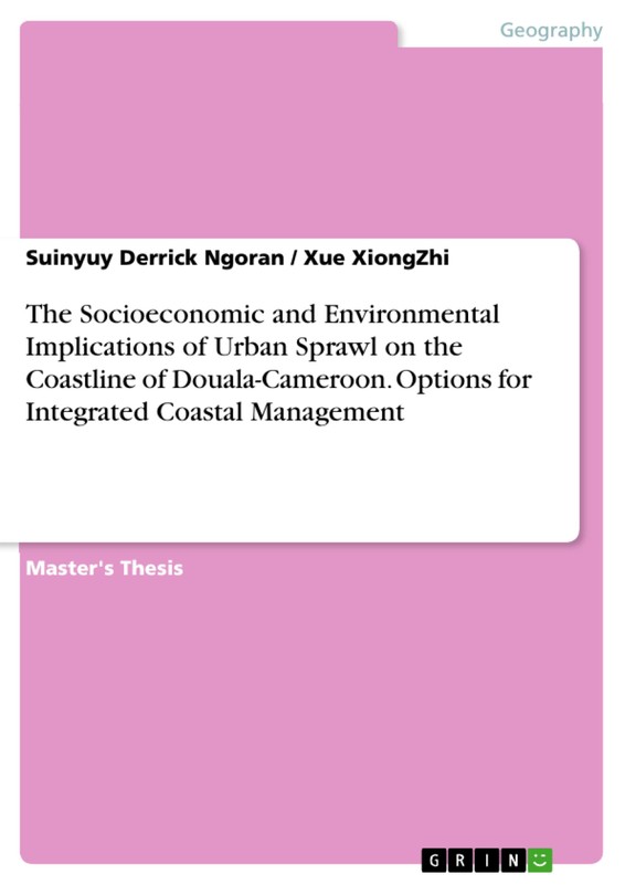 Master's Thesis from the year 2013 in the subject Geography / Earth Science - Oceanography, grade: A (91/100), Xiamen University (Coastal and Ocean Management Institute), course: Marine Affairs, language: English, abstract: The geodynamics of the coastal stretch naturally serve as a convergence point for anthropogenic settlements world-wide. On a global scale, coastal areas occupy 20 percent of the Earth's surface, yet they harbour approximately 50 percent of human population living within 200 km of the coast (UN, 2002). The continuous occupancy of the coastal milieu with limited resources and increasing economic hardship has resulted to uncoordinated spatial layout of urban settlement, termed urban sprawl. Urban sprawl, though not a new phenomenon, remains a challenge for most decision makers of the world, of which, Cameroon is not an exception. The challenge is further compounded by the fact that sprawl is not well circumscribed as there is no universally accepted definition for it. This paper, therefore, addresses the socioeconomic and environmental implications of urban sprawl on the coastline of Douala-Cameroon by making use of qualitative and quantitative research methodology. Emphatic analyses of some of the hypothesis are made with the use of land value models of William Alonso, Earnest Burgess, Chauncy Harris, and Edward Ullman. Douala, the economic capital and main seaport of Cameroon, is the industrial nerve of the country. Douala harbours almost 80% of the Cameroon's industries (Angwe and Gabche, 1997) and because of the nature and varied economic activity; it is the fastest growing area of Cameroon. The fast growing nature of the town coupled with poor management strategies have meant that there is a lot of pressure exerted on its coastal resources. There is, therefore, a need for proposed long-lasting solutions to reverse or attenuate the prevailing situation. This study elucidates a brief background of Cameroon and paints a vivid picture on the morphological aspect of sprawl as well as its socioeconomic connotations. The work also examines the key players involved in shaping the urban planning process in Douala and further x-ray gaps inhibiting sustainable urban planning in Cameroon. Moreover, the paper examines Xiamen's socioeconomic and environmental atmosphere before and after the implementation of Integrated Coastal Management (ICM) and, it is, however, deduced that, the entrusting of more powers to local governments to implement new environmental laws and welcoming of multilateral and bilateral assistance by the Chinese Central Government acted as a crunch since the introduction of ICM (Chen and Juha, 2003). [...]