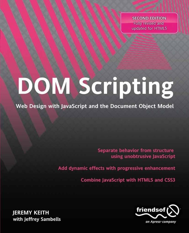 These days, Web Designers and Developers take more care in designing and building web sites. Less readily do they turn to old fashioned techniques such as GIF spacers, tables for layout, and deprecated HTML elements, which can cause accessibility/usability problems and are just plain bad practice. There are three main technologies married together to create usable, standards-compliant web designs - XHTML for data structure, Cascading Style Sheets for styling your data, and JavaScript for adding dynamic effects and manipulating structure on the fly using the Document Object Model. This book is about the latter of the three. "DOM Scripting: Web Design with JavaScript and the Document Object Model" gives you everything you need to start using JavaScript and the Document Object Model to enhance your web pages with client-side dynamic effects. We start off by giving you a basic crash course in JavaScript and the DOM, then move on to provide you with several real world examples built up from scratch including dynamic image galleries and dynamic menus, and show you how to manipulate web page style using the CSS DOM, and create markup on the fly.