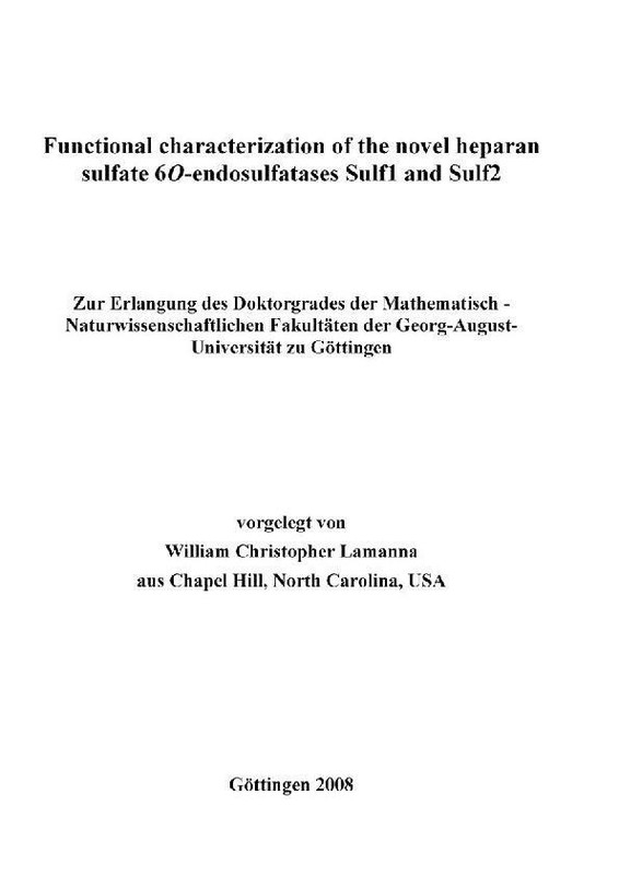 Functional characterization of the novel heparan sulfate 6O-endosulfatases Sulf1 and Sulf2 (e-book) (used book) | bookbook.eu