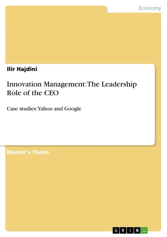 Master's Thesis from the year 2009 in the subject Business economics - Business Management, Corporate Governance, grade: 2 (Second Class), University of Sussex (SPRU - Science and Technology Policy Research), course: International Management, language: English, abstract: The research plans to show the importance of the leadership role of the Chief Executive Officer (CEO) in Managing Innovation. This has also attracted the focus of researchers analysing leadership styles and its relation to innovation. Innovation is a transition from traditional methods to modern ways of providing products, services, processes, business models and much more. However, factors that have continuously kept innovation ever-increasing have not yet been clearly identified. Effectively, CEOs have their own role in the process of managing innovation allowing, initiating and monitoring the processes, products, services offered by public or private sectors. Therefore, this dissertation plans to compare the CEOs leadership role in two leading online world companies Yahoo and Google that are rapidly facing the growing demands for modernisation of their offerings. The comparison will attempt to test a hypothesis that relates Yahoo and Google CEOs' role in selection of strategy, acquisitions and management style, and its effect in innovation outcomes.