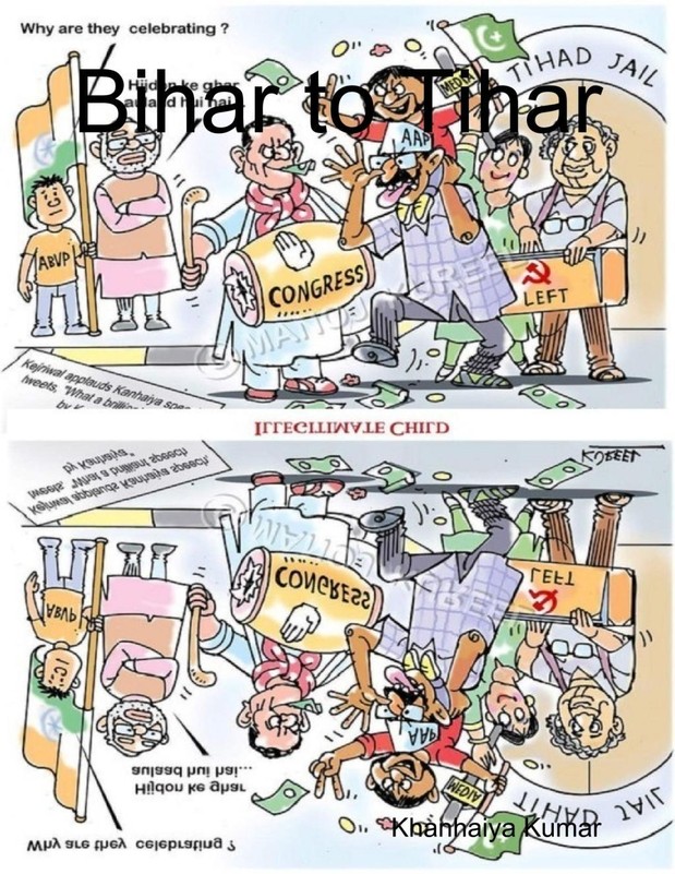 I am Khanhaiya Kumar, native of Bitihar. I am doing PhD on a very important subject "Mating habits of gay chimpanzees in West Africa" at PANU University, the best University in India and possibly the best University in the world. My idols are "Faizal Guru," "Janab Kasab Sahib," "Focus Carat," "Baba Badkar," "Zakir Nalayak," "Gharkha Dutt," "Dr. Kana Ayyub" and all PhD students who had committed suicide since they failed to solve their PhD problems. I personally feel that, all deprived Indians should automatically be awarded a PhD degree coupled with a free pension of 1 lakh rupees/month to be delivered in cash via post at door step. Till then we are going to fight for azaadi from India. Imagine a day, when no PhD student would have to commit suicide, imagine a day, when no lower caste will be humiliated by upper caste, s/he can use his/her doctorate degree and force others to call him/her Dr. X, Dr. Y, etc.