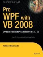 Microsoft Windows Presentation Foundation provides the foundation for building applications and high-quality user experiences in Windows Vista. WPF blends application user interface, documents, and media content to provide richer control, design, and development of the visual aspects of Windows programs. Author Matthew MacDonald shows you how WPF really works. His no-nonsense, practical advice will get you building high-quality WPF applications quickly and easily. MacDonald will take you through a thorough investigation of the more advanced aspects of WPF, and its relation to other elements of the WinFX stack and the .NET Framework 3.5, to complete your understanding of WPF and VB 2008.