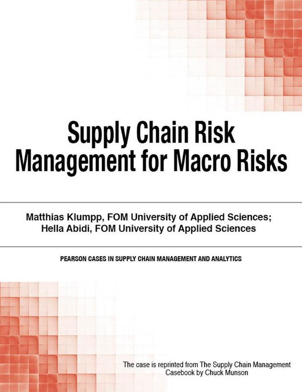 This new case study focuses on the macro risks associated with relying on global supply chains. It addresses large events including floods, earthquakes, hurricanes, fires, and tornadoes; manmade disasters such as wars and economic crises; and technical disasters ranging from transport accidents and explosions to fires, gas leaks, and industrial accidents. Coverage includes risk classification; strategic, tactical, and operational issues; and a complete supply chain resilience model designed to help both students and practitioners effectively integrate macro risks into planning. Authors: Matthias Klumpp and Hella Abidi; both from FOM University of Applied Sciences.