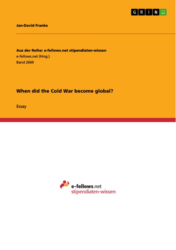 Essay from the year 2015 in the subject History Europe - Germany - Postwar Period, Cold War, grade: 1, Oxford University, language: English, abstract: The 20th century was shaped by three wars, each global and utterly destructive in its own way. The first took the world by surprise and crushed the romantic ideal of heroism with industrialised brutality. The second stained the very core of mankind with unimaginable evil and cruelty, with death and suffering on an unprecedented scale. The third brought disruption to the world and the planet to the brink of nuclear catastrophe. This is the story of the role that the atomic bomb played in this third global conflict within a few decades, which we have come to call the Cold War. The impact of nuclear weapons on international relations in general and on the Cold War in particular is too little understood. Especially for us millennials, who were socialised after the breakdown of the Soviet Union, the pervasiveness of nuclear danger is hard to conceptualise. Yet, it defined an era of global volatility and a Zeitgeist of glooming apocalypse that manifested itself in the political, cultural and social spheres of its time. In this paper, the author will reconstruct how nuclearisation was both cause and consequence of the Cold War, cemented its dichotomy and eventually made it global. The argument is this: while it may have been the Korean War, or the emergence of proxy wars in general, that manifested the clash of expansionist ideologies on an international level, the Cold War became - and had to remain - global as a result of nuclearisation.
